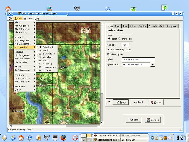 • Rendering: You can select a zone from the menu and render it. Timing of message box posts needs tweaking, but it works. Error messages get posted to the text box now, too, and it stays displayed until you close the box, so that you can cut and paste the results of a test run into an e-mail to me when MapperGUI barfs in some unexpected fashion.