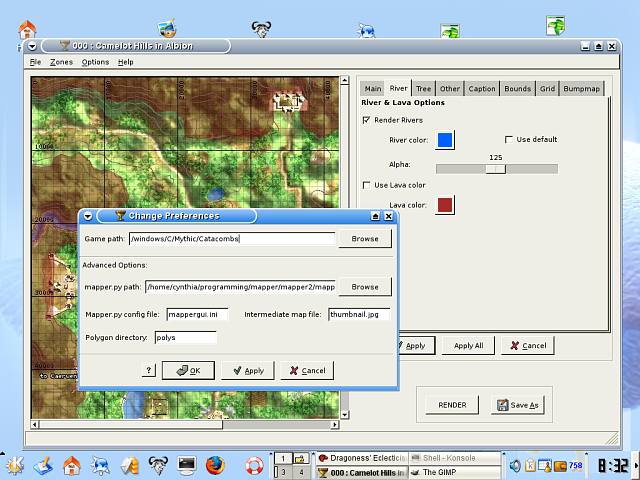 • Preferences: I use this term to differentiate less-often-changed options like 'Gamepath' and 'path to mapper.py' from the frequently tweaked drawing options. Preferences now have their own pop-up dialog accessed from the main menu, rather than being (a) right in your face below the drawing all the time or (b) not tweakable through the GUI at all.